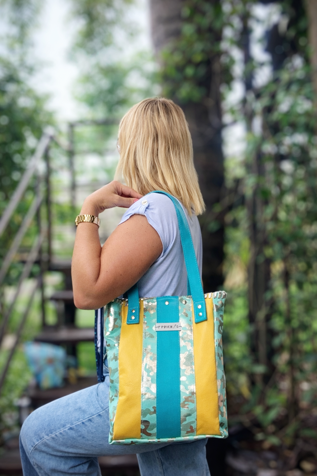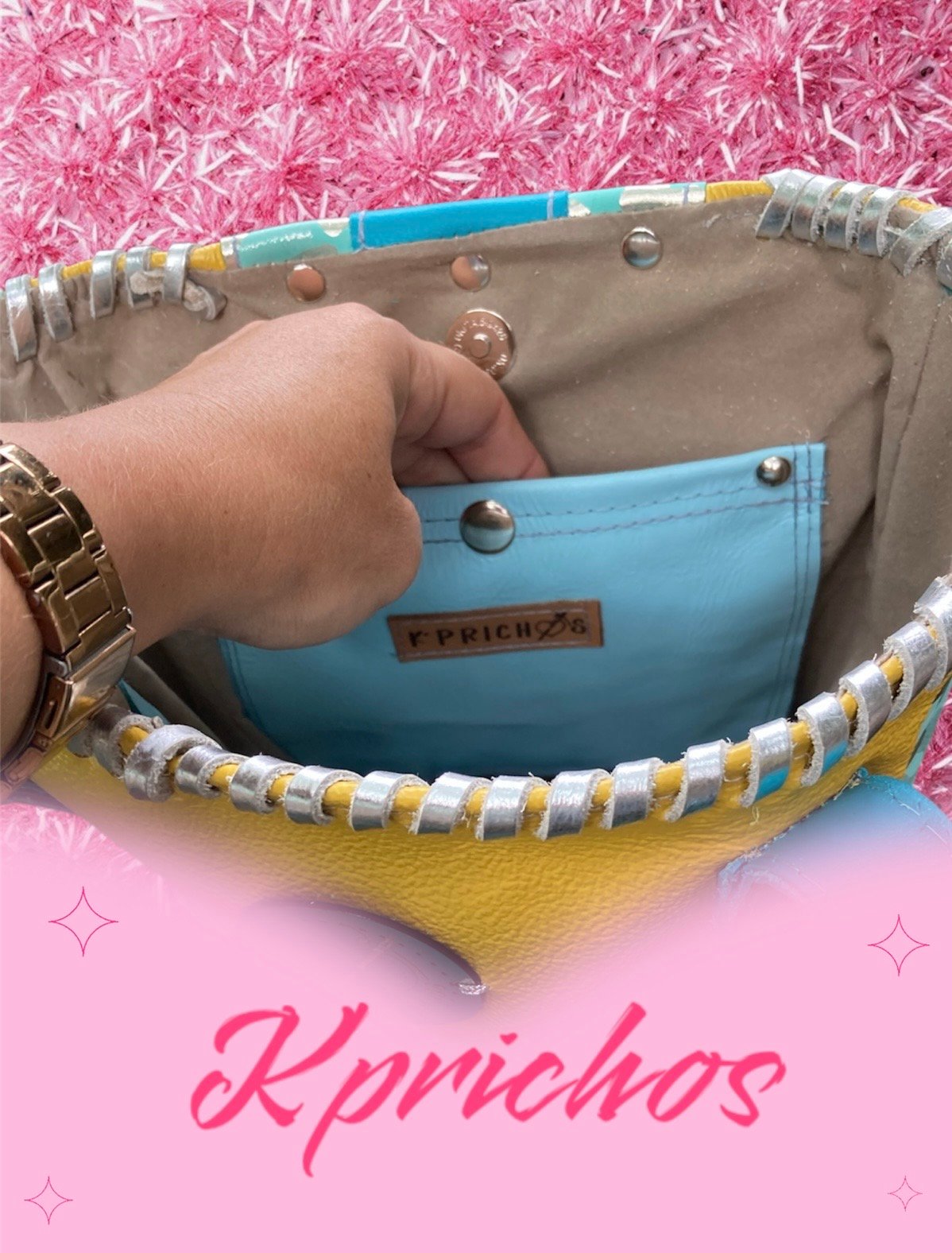 Matera Cielo CategoríasPorta celular Universo Kids Sobres/ Neceser Monederos / Porta documentos de cuero Bandoleras de tela y crochet Sobres de tela y crochet Bandoleras Mochilas Bolsos Materas Cartera Hobo bag Riñoneras Yerberas/ Porta mate Matera Cielo$4.500 Agotado Matera/ Bolso en cuero liso (turquesa y amarillo) y cuero grabado con diseño print, detalles en tiento de cuero. Forrada, con bolsillo externo e interno. Medidas: alto 32 cm, ancho 24 cm, fuelle de 10 cm. Sin existencias Categoría: Materas Productos relacionados ¡Oferta! Matera Diva Western $4.500 El precio original era: $4.500.$3.490El precio actual es: $3.490. Añadir al carrito AgotadoMatera Tierra $4.500 Leer más AgotadoMatera Oro Terracota $4.500 Leer más AgotadoMatera Orquídea nocturna $4.500 Leer más