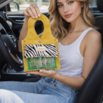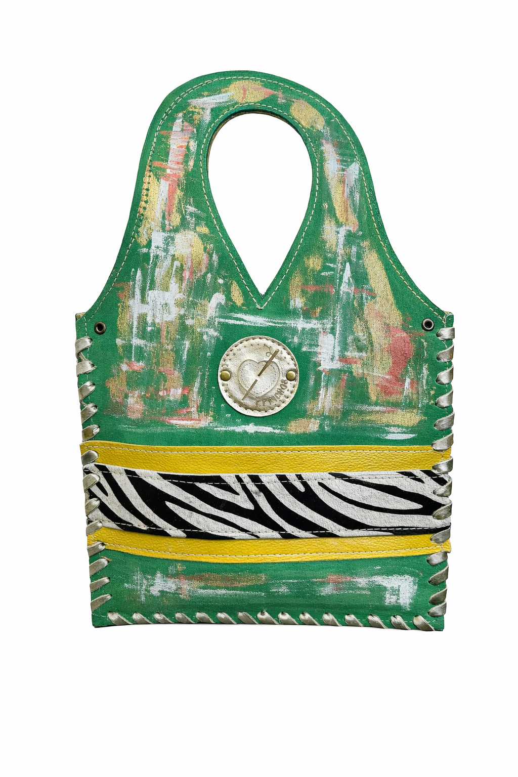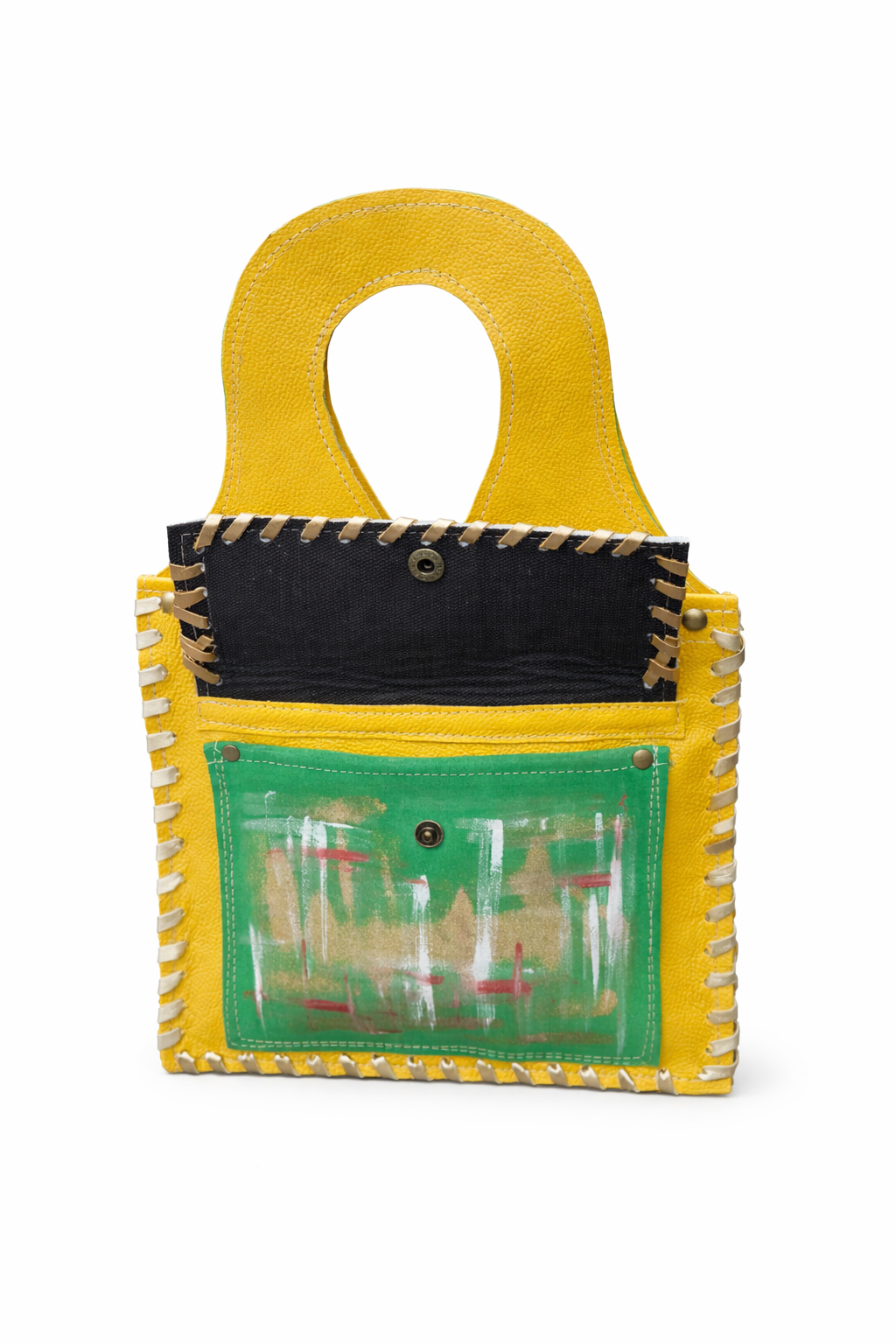 Bolso para auto confeccionado en cuero, construido con diferentes texturas y colores,  con bolsillo externo. Bordado con tientos de cuero. Para que tus llaves, tu agenda, tus lentes y tus documentos se encuentren muy bien organizados en el auto. Medidas: 25 cm de ancho x 21 cm de alto. Bolsillo 18 cm de ancho x 13cm de alto.